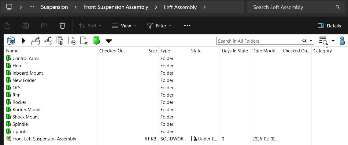 When using SolidWorks PDM, it is important to consider file organization and assembly creation as to minimize confusion and increase clarity for all users. The structure below should be utilized for all of PDM, regardless of subsystem.