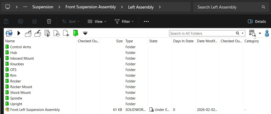 • FOLDERS: Aerobody, Battery Pack, Cockpit, Structures, Suspension